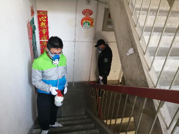 马子文为小区进行消毒工作