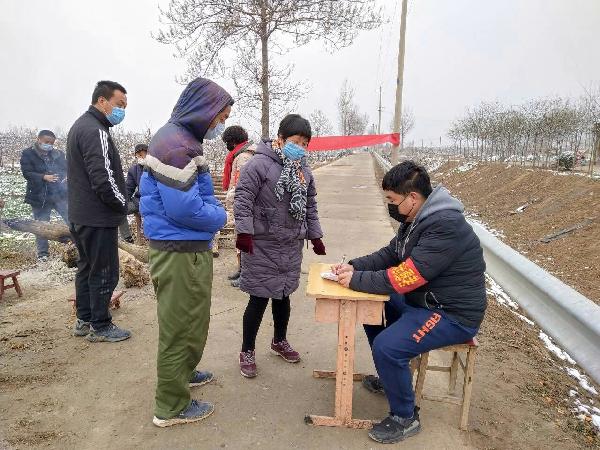 叶铮在村口登记出入人员信息