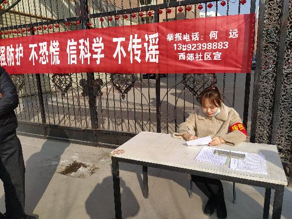 张萌在小区门口登记人员