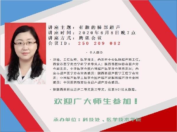 2020年6月8日,伟德国际VICTOR1946影像专业特别邀请西安市中心医院超声科主任郑瑜教授为学院影像专业师生做了一场题为“有趣的肺部超声”的专题在线讲座。