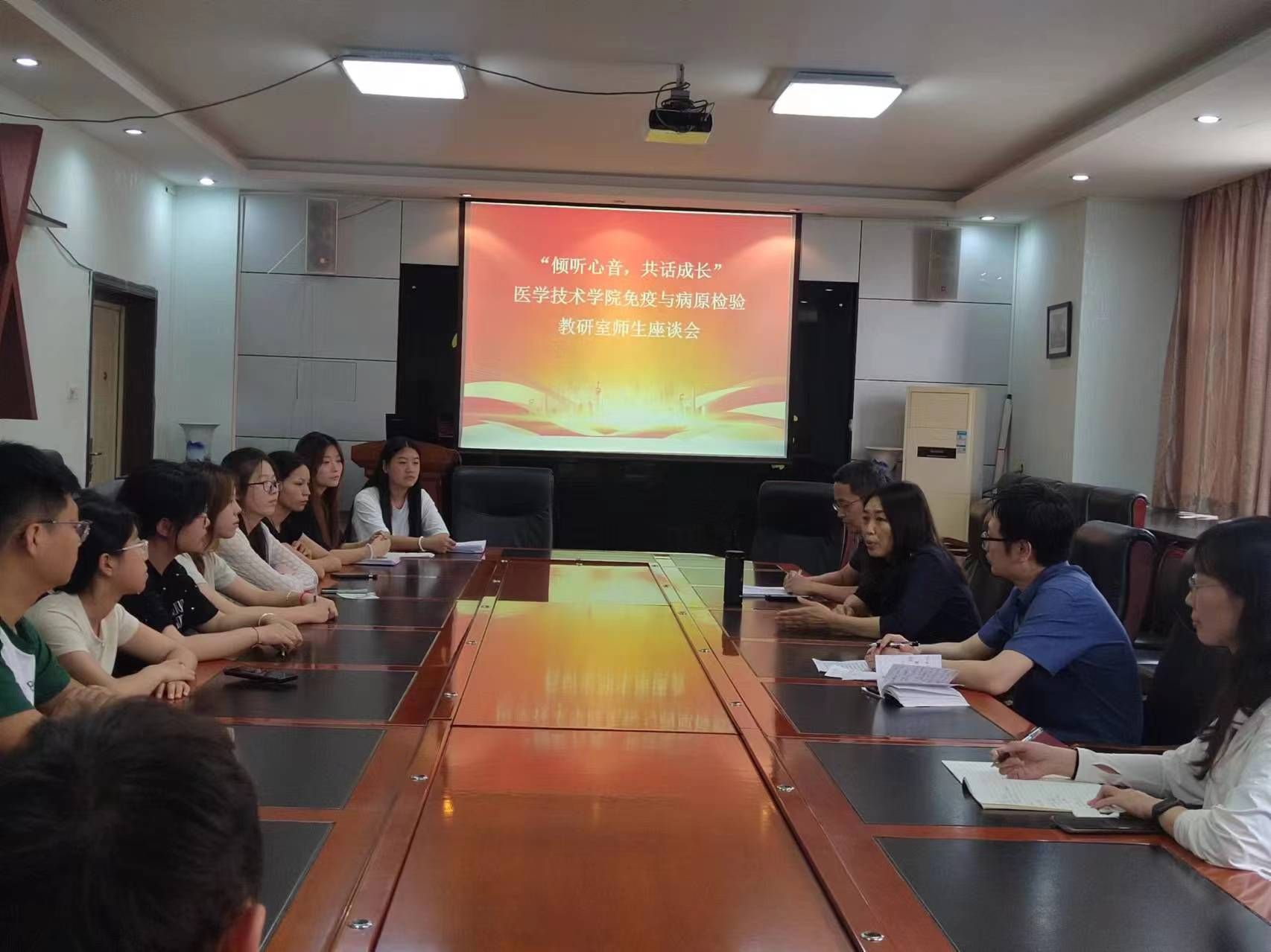 座谈会上,武永红首先介绍此次座谈会的主旨思想是深入了解检验专业学生入校以来的学习情况和思想动态以及对即将步入专业课学习阶段的期待、问题和困惑,实现教和学互通、承上启下共进,为提升学生专业学习能力和效果夯实基础。他鼓励学生要敞开心扉、深刻剖析、广泛交流,为自身进步、专业建设和学院发展建言献策。