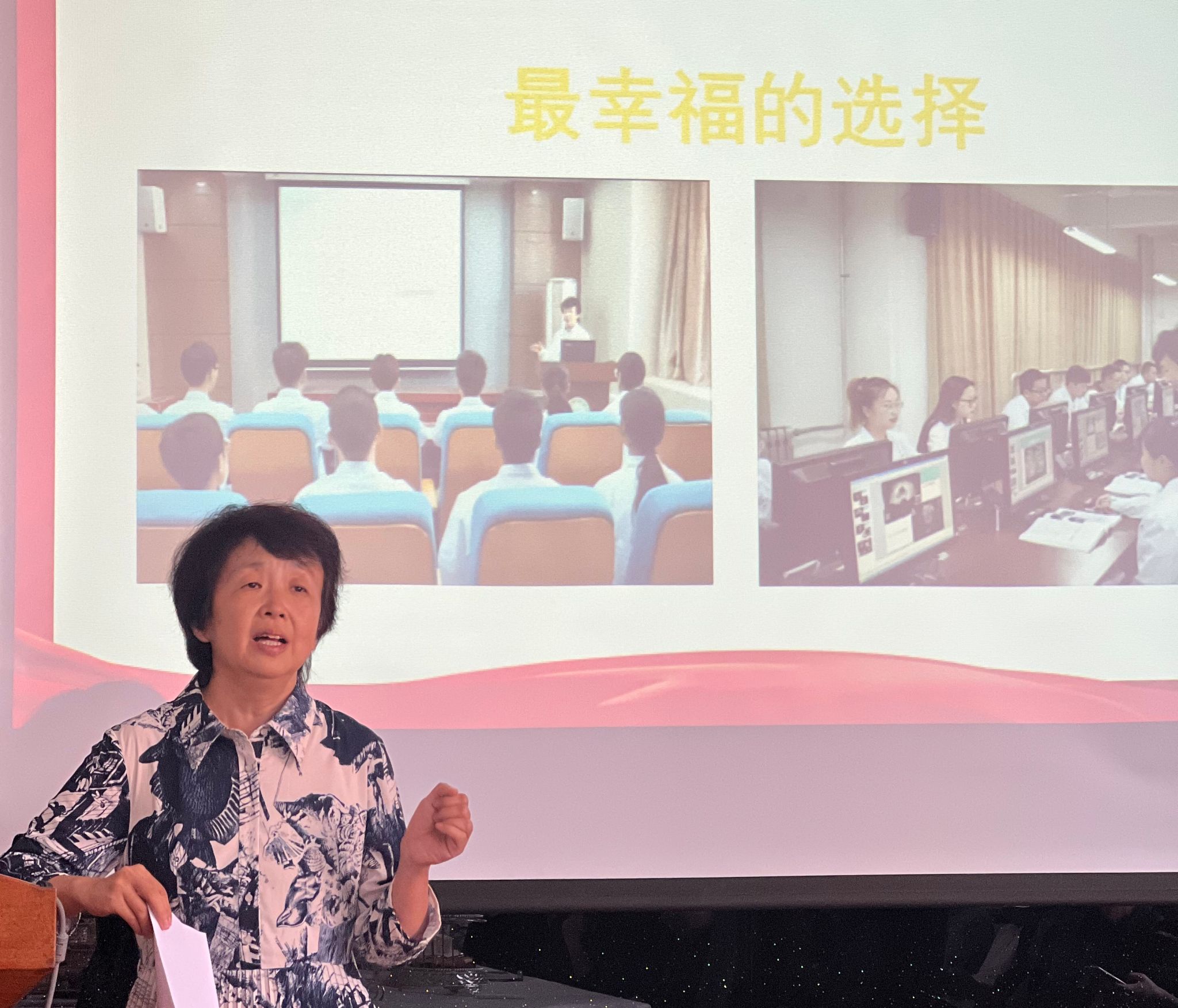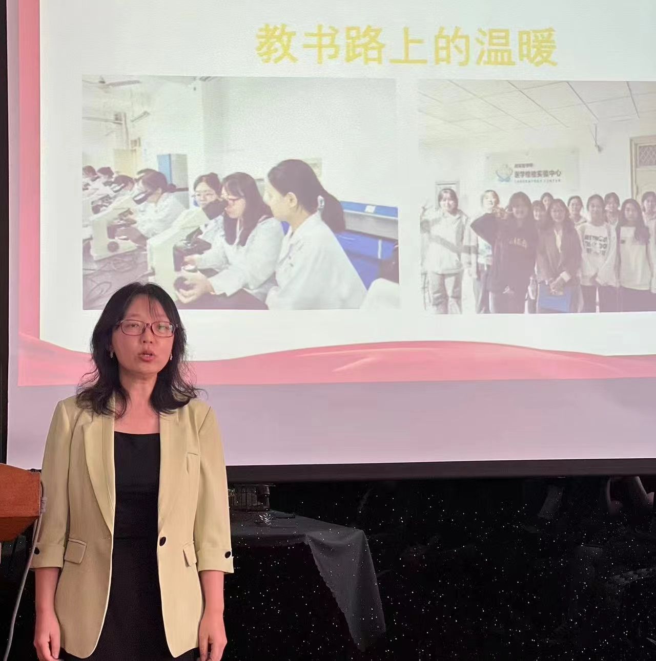 随后,医学影像学专业负责人段云燕以“最幸福的选择”为主题,分享了自己在教育事业中的心路历程。她表示,能够成为一名教师,是她一生中最幸福的选择,她将继续以满腔的热情和无私的奉献,为学生的成长成才贡献自己的力量。