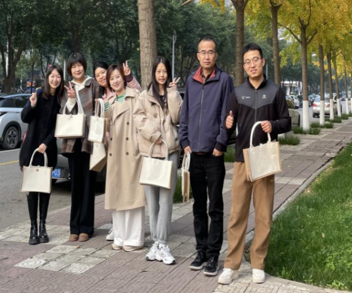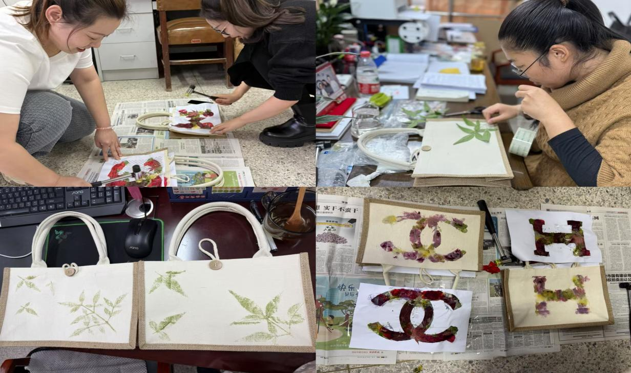 此外,在开展健步走活动的过程中,学院还积极倡导绿色环保理念,教师随手捡拾沿途美丽的落叶,通过拓印技艺,将其巧妙地装饰在帆布包上,制作出既独特又精致的手提袋,充分展现了教师对美好生活的追求以及学院对每位教师的关怀。