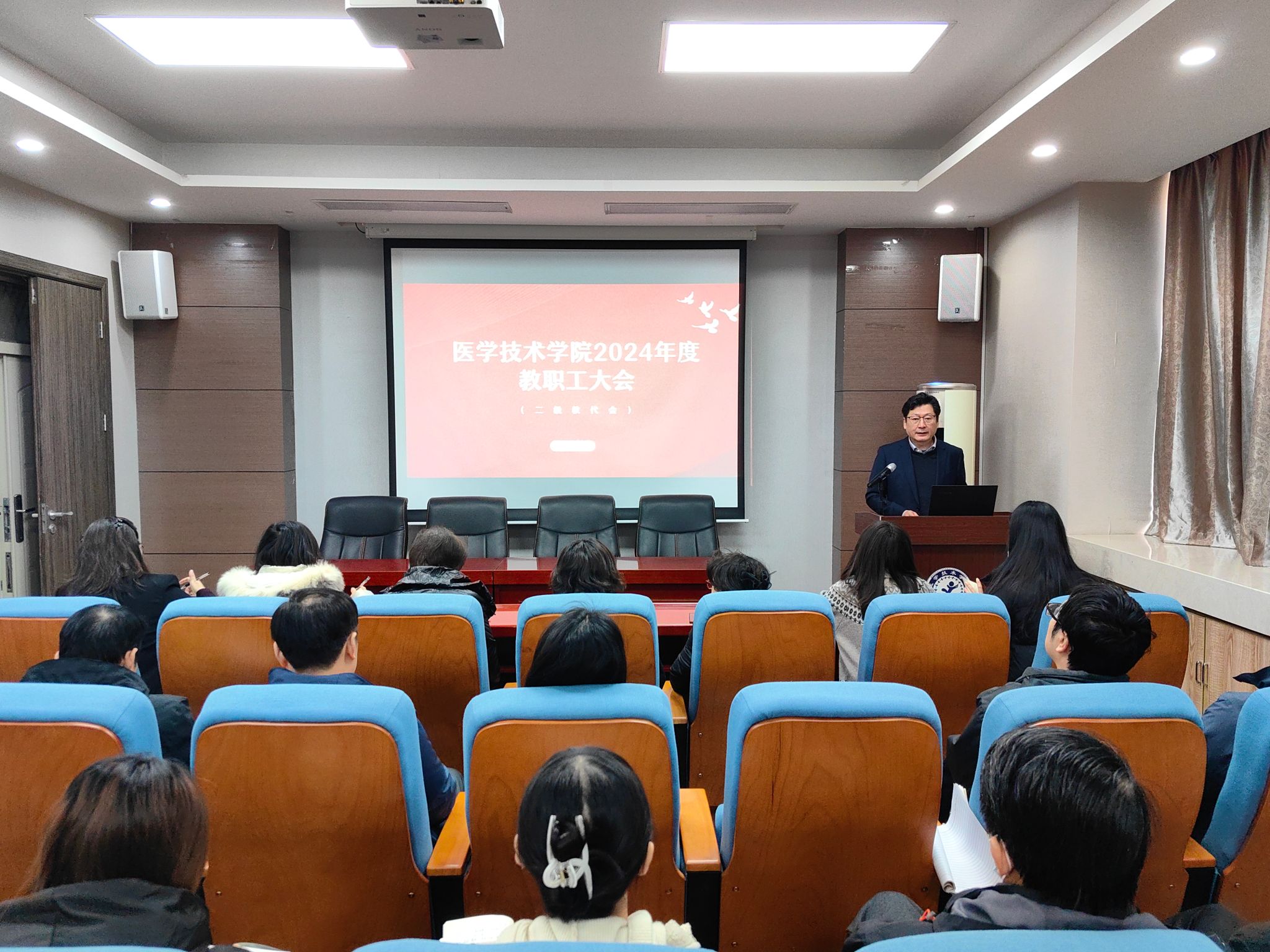 12月31日,伟德国际VICTOR19462024年度教职工大会(二级教代会)在立言楼 304召开。本次教代会应到58人,实到45人,符合教代会人数要求。会议由伟德国际VICTOR1946党总支书记、分工会主席任向明主持。