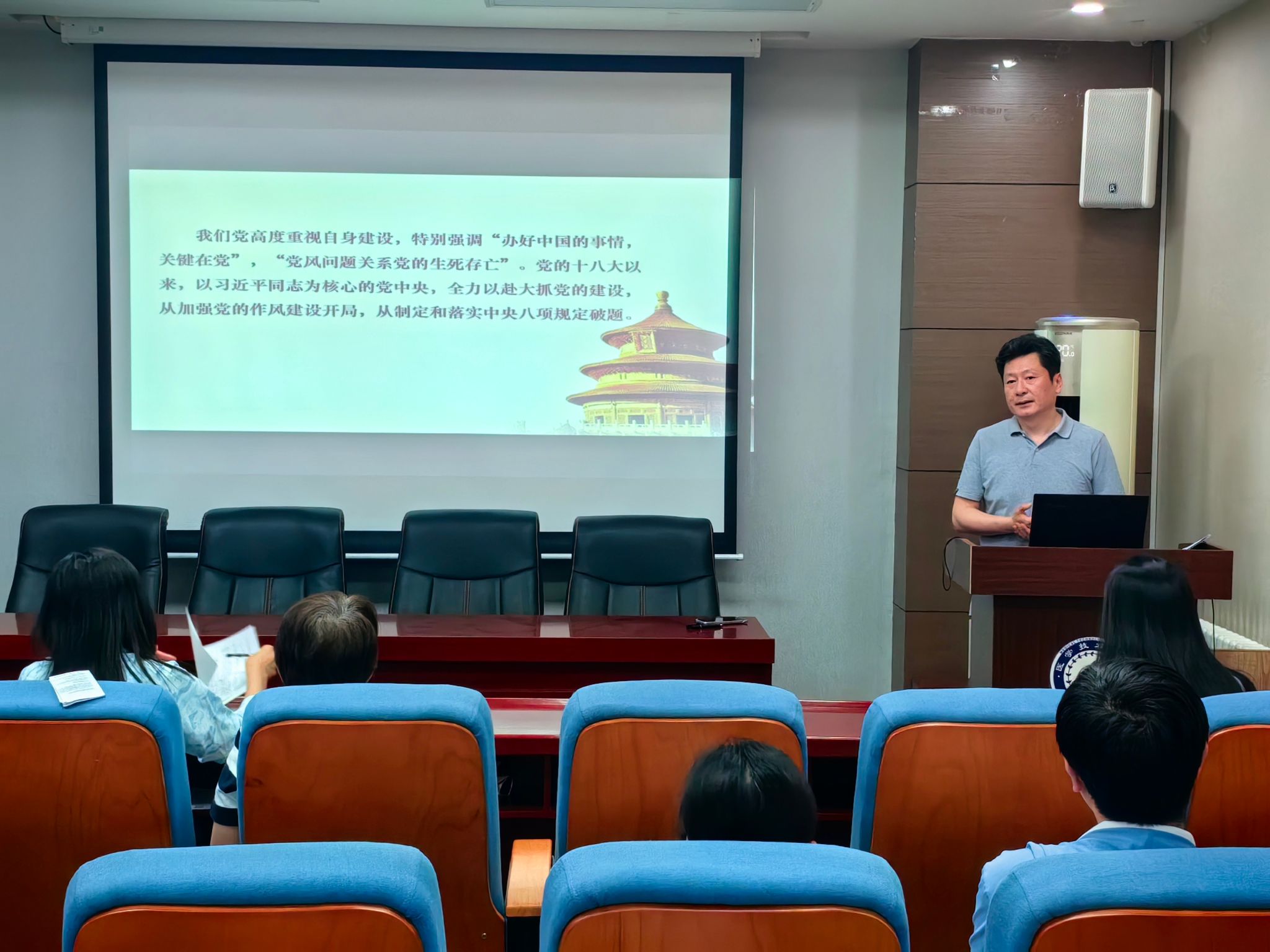4月17日下午,伟德国际VICTOR1946党总支书记任向明在学院报告厅以“深入学习习近平总书记关于加强党的作风建设的重要论述”为主题讲授专题党课,学院全体教师党员参加学习。