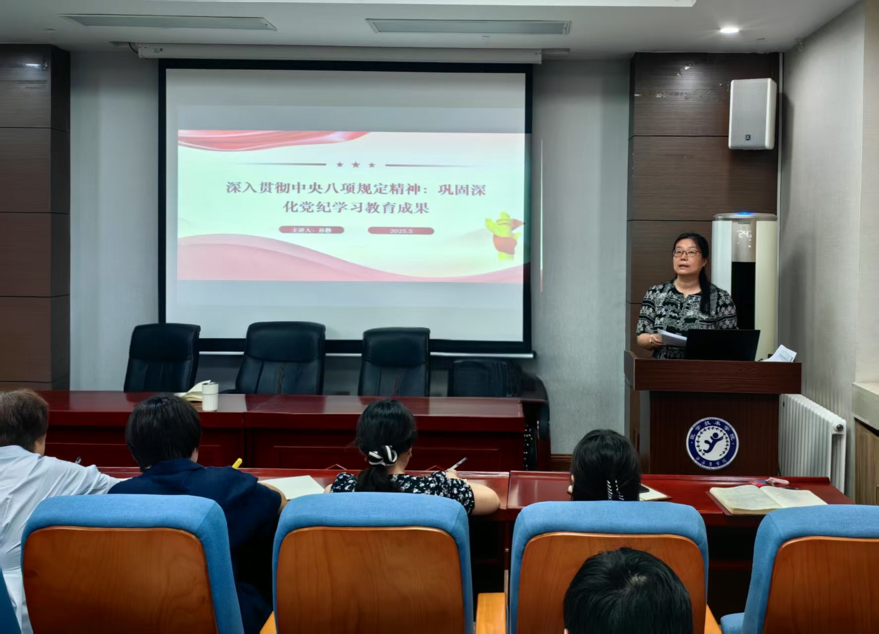5月19日,伟德国际VICTOR1946召开“深入贯彻中央八项规定精神学习教育”专题党课学习会,院长孙静主讲,全体无课党员教师参会。