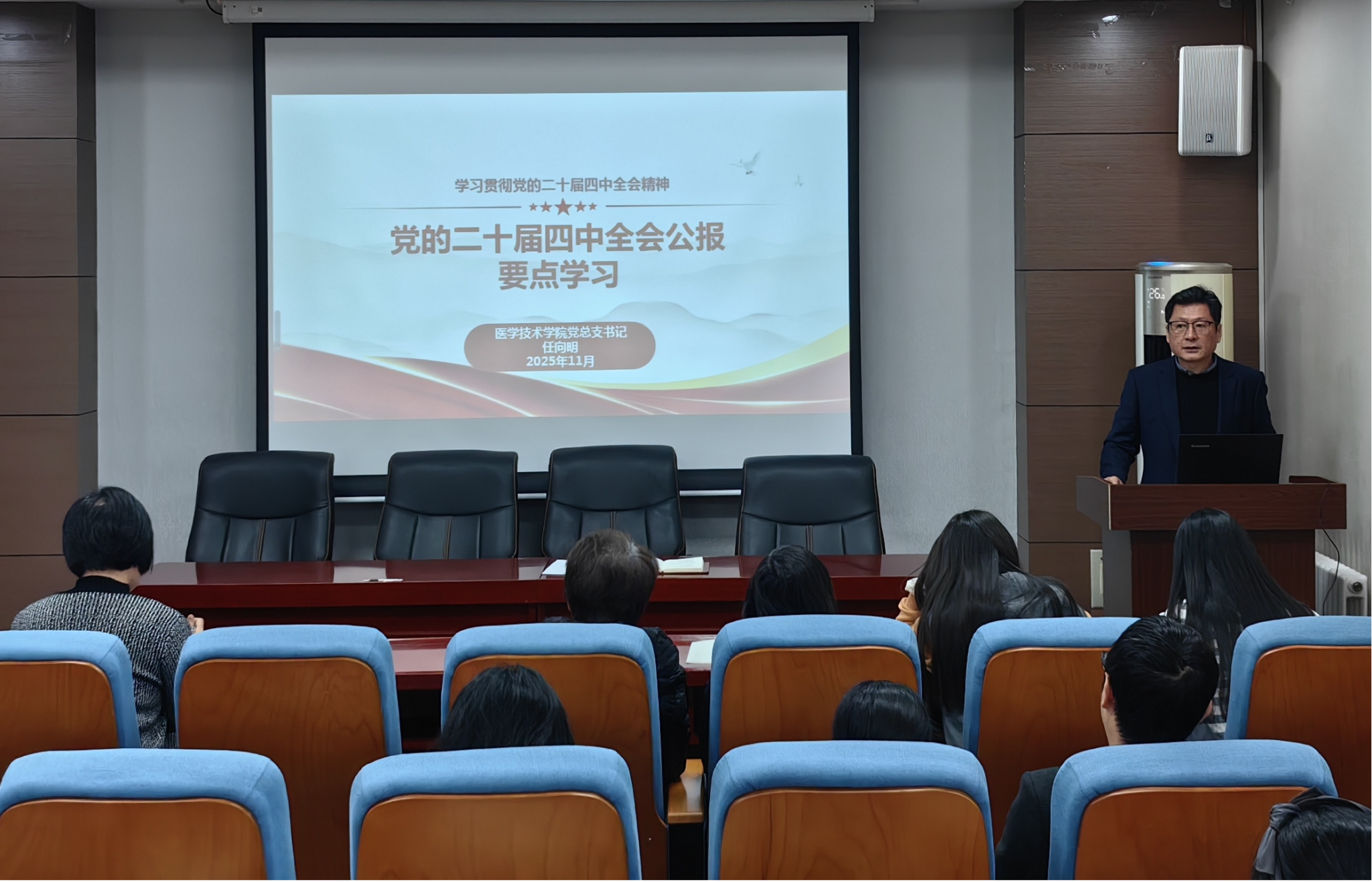 任向明围绕全会公报,重点解读了全会重大意义、核心内容及教育领域目标任务,强调党员要带头学深悟透,推动全会精神“进课堂、进实验室、进头脑”,实现师生学习全覆盖;要立足立德树人根本任务,在教学改革、科研攻关、师德师风建设中作表率,培养高素质医学技术人才;要强化责任担当,以实干推动学院工作提质增效。