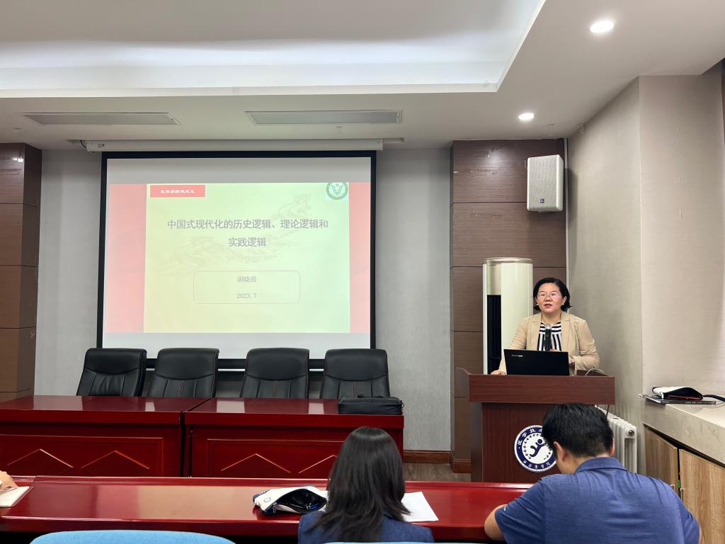 宣讲会上,胡晓霞副教授解读了中国式现代化的历史逻辑、理论逻辑和实践逻辑。她讲到,习近平总书记在党的二十大报告中对新时代新征程党的使命任务作出了重要战略部署,明确提出了从现在起党的中心任务,向全党全国人民发出了以中国式现代化全面推进中华民族伟大复兴的动员令。深入理解中国式现代化的理论逻辑、历史逻辑和实践逻辑,对于激励我们自信自强、踔厉奋发迈向全面建设社会主义现代化国家新征程,具有重要的理论意义和实践价值。