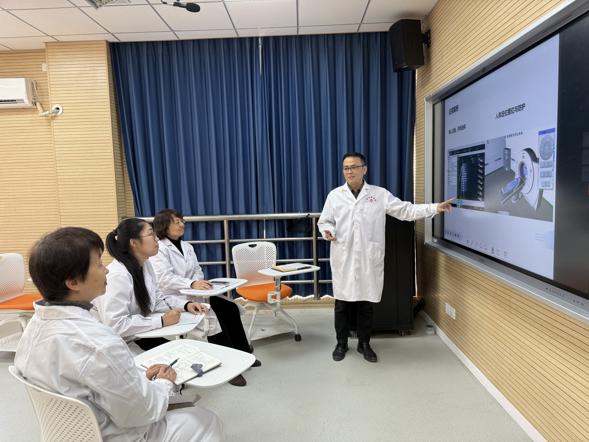 备赛过程中,四位教师结合我校医学教育的实际问题,共同协作研究仿真技术在影像专业教学中的应用,精心设计教学方案、反复进行模拟演练,将AI智能技术与影像专业特点融合,将数智仿真融入教学实践,使学生借助智能科技在虚拟环境中直观、深入地理解专业知识,准确掌握专业技能,切实有效地提升教学效果。