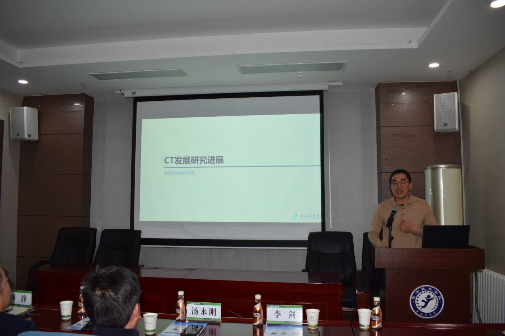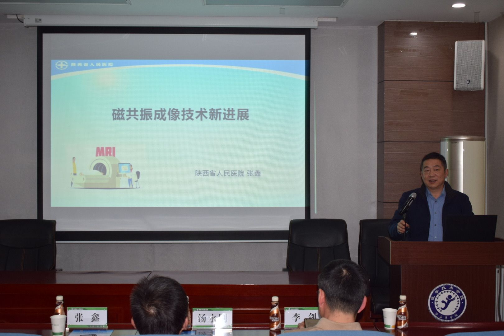 讲座正式拉开帷幕。首先,西安市红会医院的汤永刚教授带来了题为“放射医学新技术探析”的讲座。汤教授结合自己丰富的临床经验,深入探讨了X线全景成像、数字X线体层融合成像、立位锥束X线扫描、X线动态成像及X线狭缝成像等技术原理、临床应用与特征,展示了这些技术在形态观察与功能分析中的重要作用。汤教授指出,静态与动态成像的结合能更真实反映机体情况,并展望了放射影像学的发展方向,包括负重扫描、三维成像等,为精准医疗提供支撑。他鼓励同学们在医学影像技术工作中勇于创新,追求精准与优质影像,将实践经验提升至学科高度,坚信医学影像技术发展前景广阔。他的讲解深入浅出,让在场的师生受益匪浅。