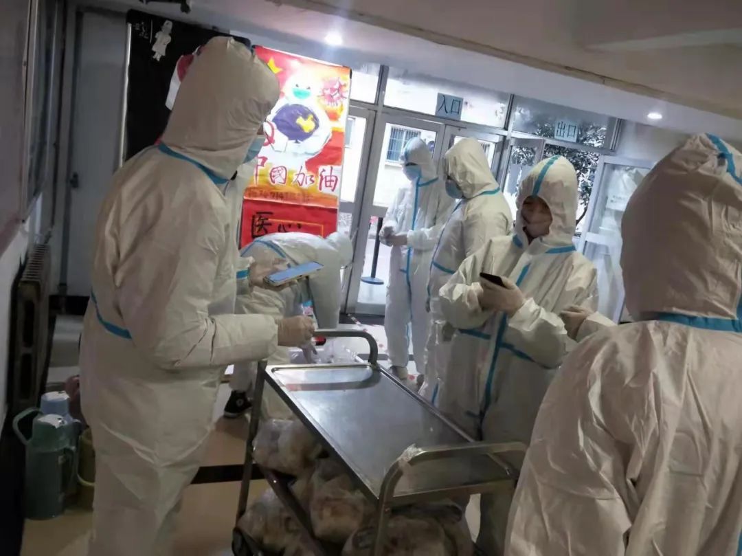 在封校期间,为了确保同学们的正常生活,我校组建了志愿者团队,他们不怕苦、不怕累,为我们送上热乎的饭菜、打水的服务。