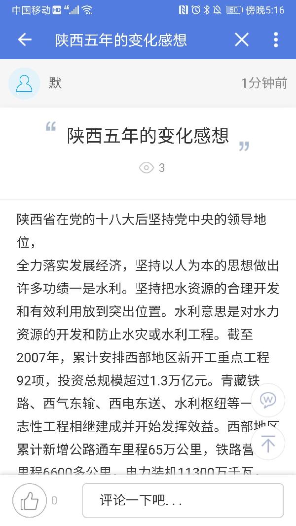 本次团日活动主要是以认真学习宣传贯彻习近平总书记来陕考察重要讲话精神为主题,分享近五年陕西的发展,以及回顾五四精神,西迁精神。首先,各团支部团干充分利用线上媒体平台,采取文字、图片、视频等形式带领团员观看习近平总书记来陕考察新闻,并围绕习近平总书记来陕考察重要讲话精神深入开展学习讨论、分享感悟、重温誓言等活动。团员们以团小组为单位在易班、朋友圈、空间等社交平台发表对此次习近平总书记来陕讲话的感悟和看法,团员青年们通过相互分享、相互学习,对党有了更全面、更深入的认识和理解,打造一支部一形式、主题突出、特色鲜明、互动性强、成效明显的主题团日活动。随后,各支部在线上会议平台分享自己眼中陕西这五年的发展,分享图片以及身边的故事,团员们纷纷感叹祖国的发展速度和变化。