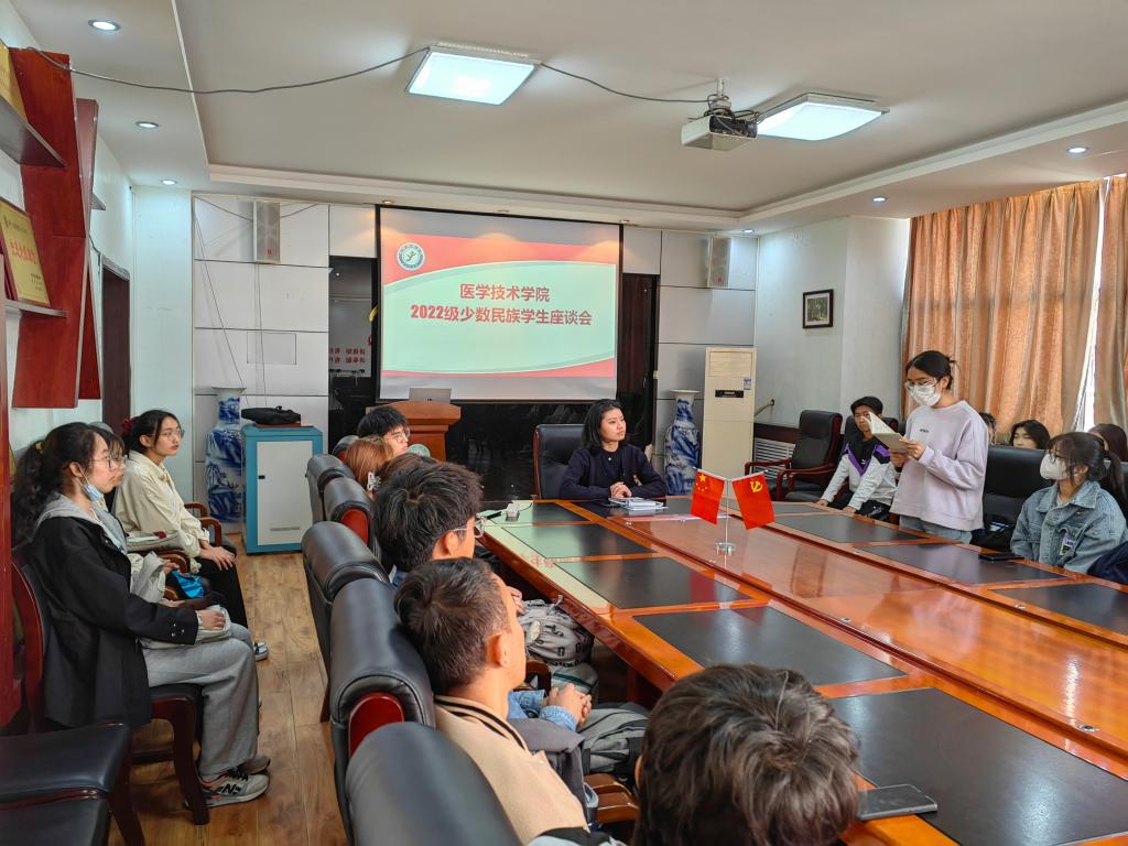 会议伊始,袁老师首先对2022级少数民族新生考入我校表示热烈欢迎,她希望同学们在未来四、五年中珍惜时光、不负韶华、努力奋进,在学校学习知识、增长本领、结下友谊。随后由医学影像学2008班努尔比耶·艾合麦提江、医学影像学2109班马欣睿同学分享了学习专业课及全国大学英语四、六级考试备考经验。以优秀学生案例引导、鼓励新同学们在新起点树立新目标,养成良好的学习、生活习惯。随后,袁老师带领同学们学习我校相关学籍管理、学位授予条例,使同学们入学之初了解政策并制定学业规划。同时,提醒新生避免存在松口气思想,激励新生向优秀学生学习,以积极心态强尽快融入到学校大家庭中,踏踏实实地学习,提高学业成绩,不断提高就业竞争力。