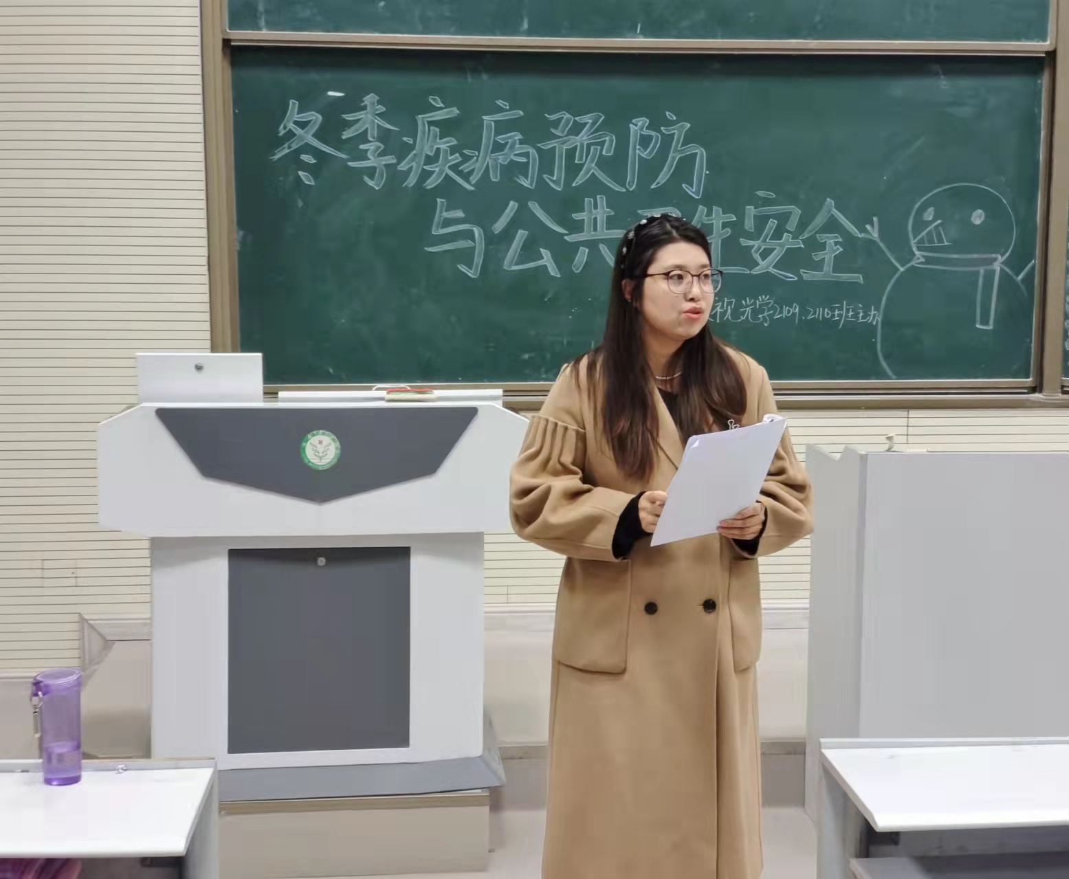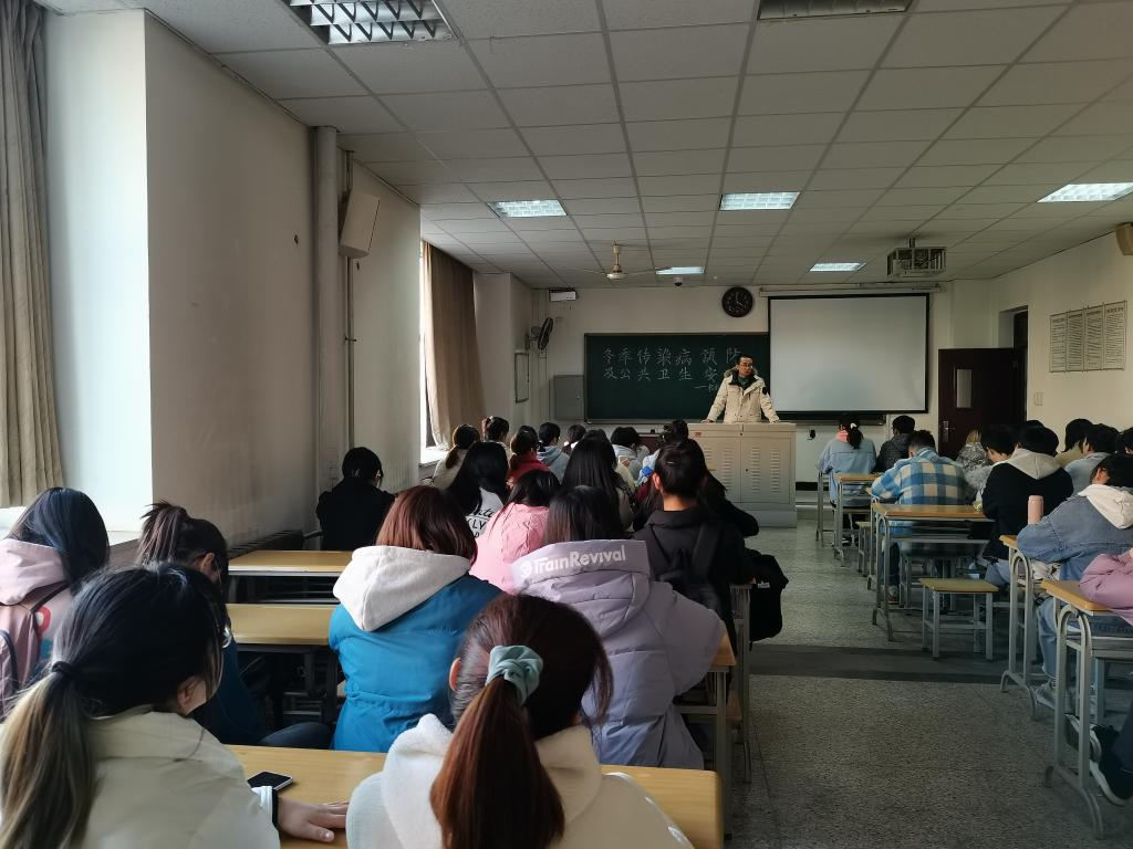 各班首先对突发公共卫生事件的应对、冬季传染病的预防进行了宣传讲解。各班辅导员从学生易患的一些常见传染病着手,让学生了解秋冬季节常见传染疾病的病因、传播途径及防治措施,特别是针对新冠肺炎,肺结核、出血热等传染病的防范事项、防治要求及流程行了讲解。同时,还提醒同学们要养成良好个人卫生习惯,提高公共卫生防控意识,勤洗手、勤通风,保持空气流通,并加强户外锻炼;发现问题及时报告,及时就诊。