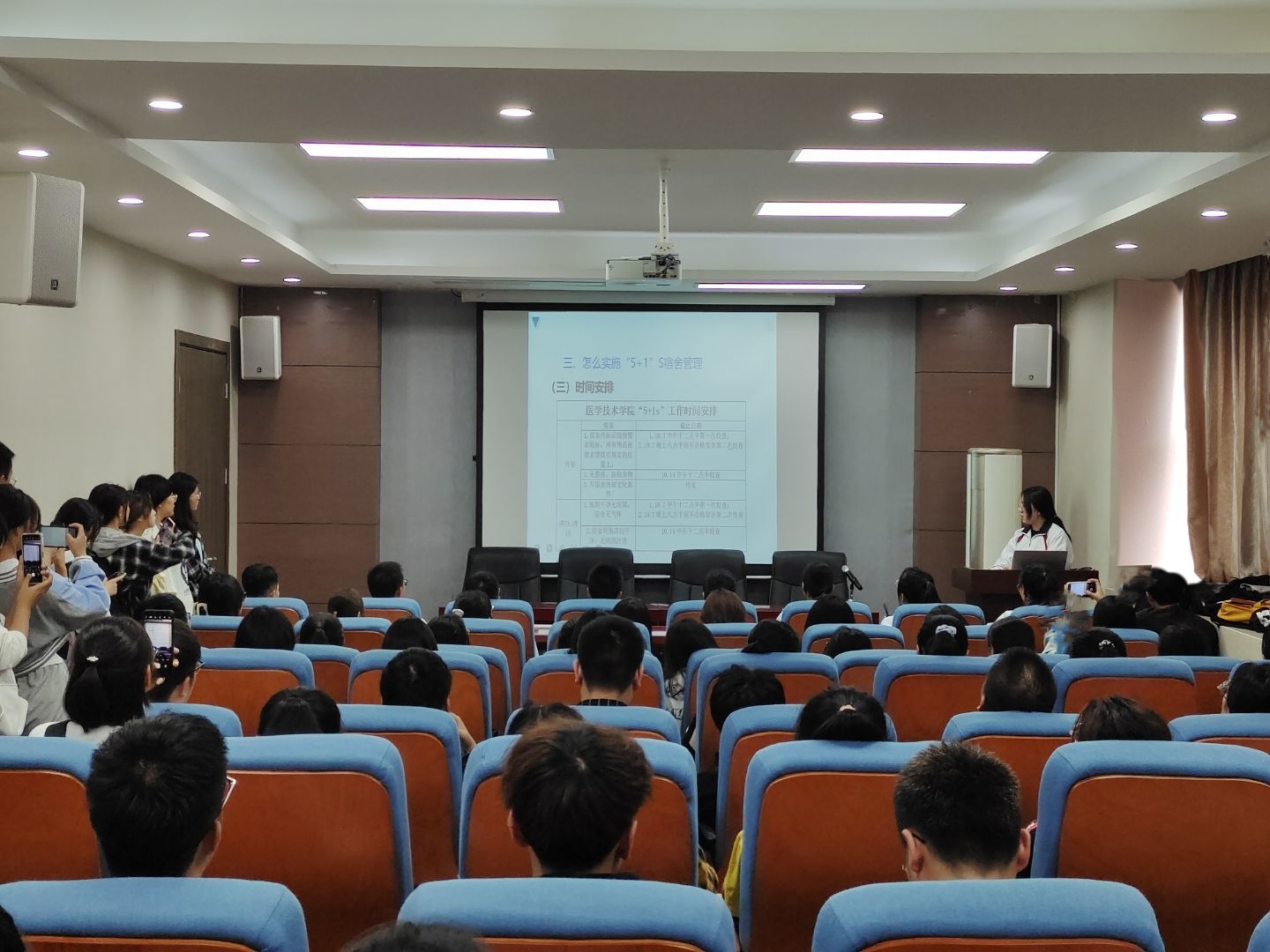 培训会中,讲解人围绕“5+1”S宿舍管理制度是什么、为什么、如何做等内容展开,并在会中指出宿舍常见问题和相关整改措施。让新生们清晰了解此制度的相关内容。最后权益部同学还为新生们解答了疑惑,方便新生们日常整理工作的开展。