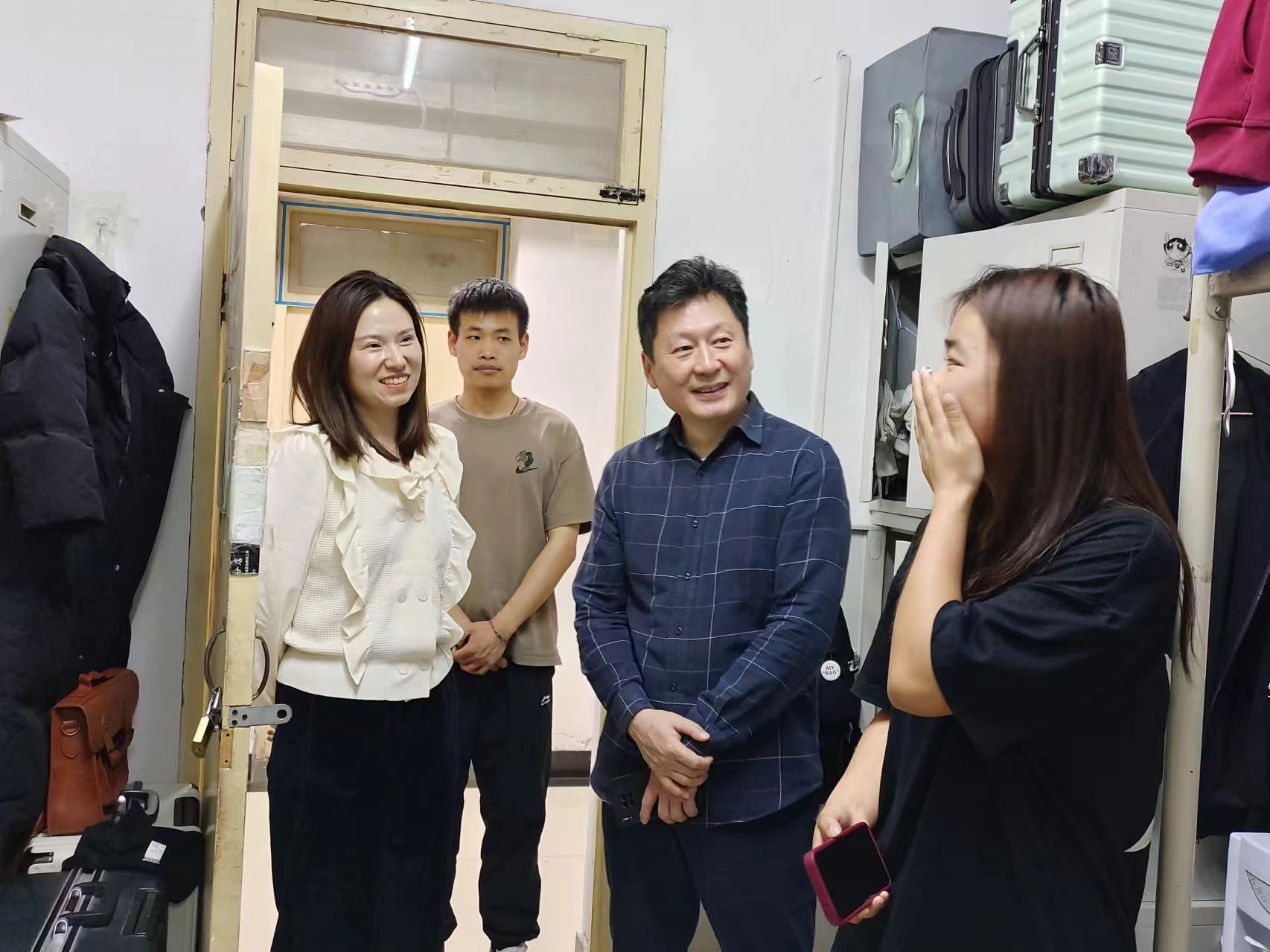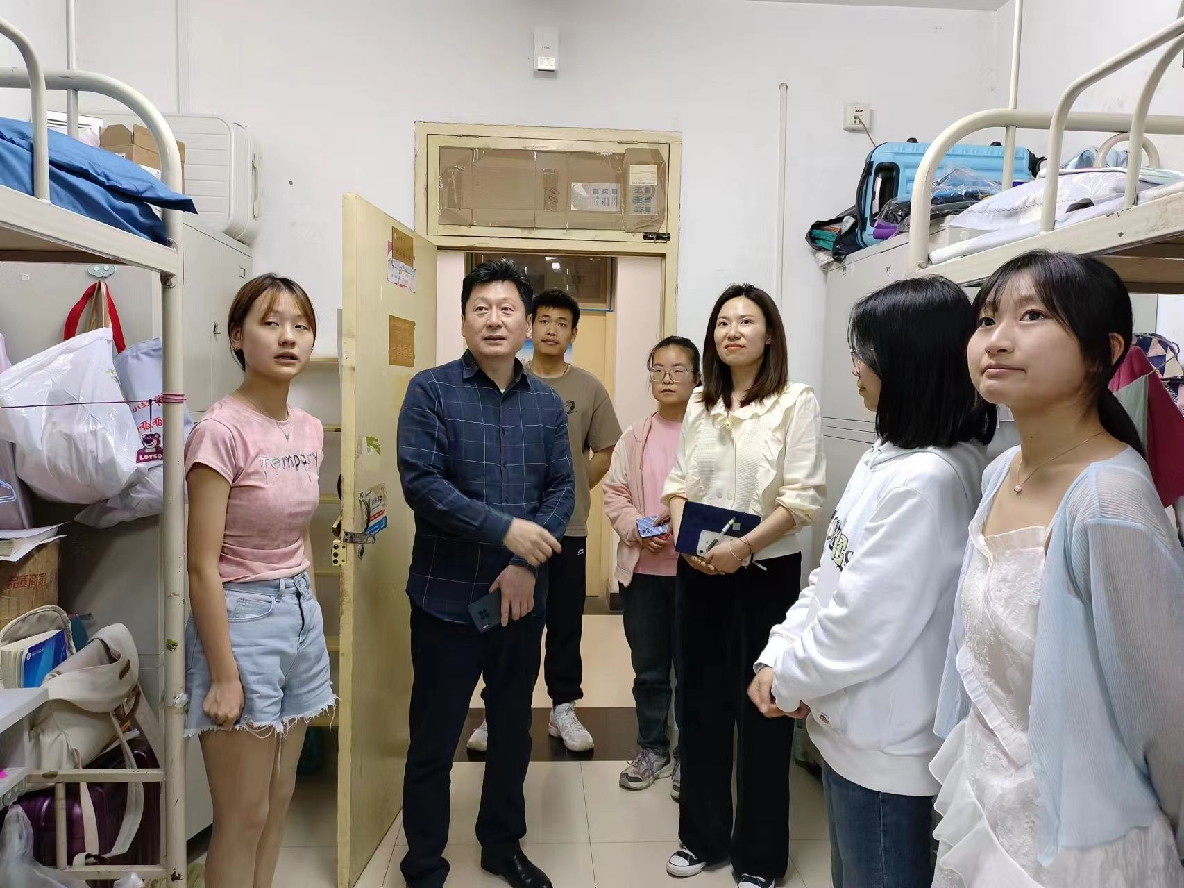 在走访过程中,任向明书记十分关心同学们的学习生活情况,与学生进行了面对面交流,细心叮嘱同学们宿舍可能存在的安全隐患,如违规电器使用、私拉乱接电线、易燃物品堆放等,以及宿舍卫生文明状况。并向同学们强调安全舒适的宿舍环境是优良学风的“催化剂”,希望同学们能够重视学校的安全教育工作,牢固树立安全意识、提高隐患自查能力,做到心中有责、行动有力,共同维护好我们团结友爱、温暖平安的大家庭。