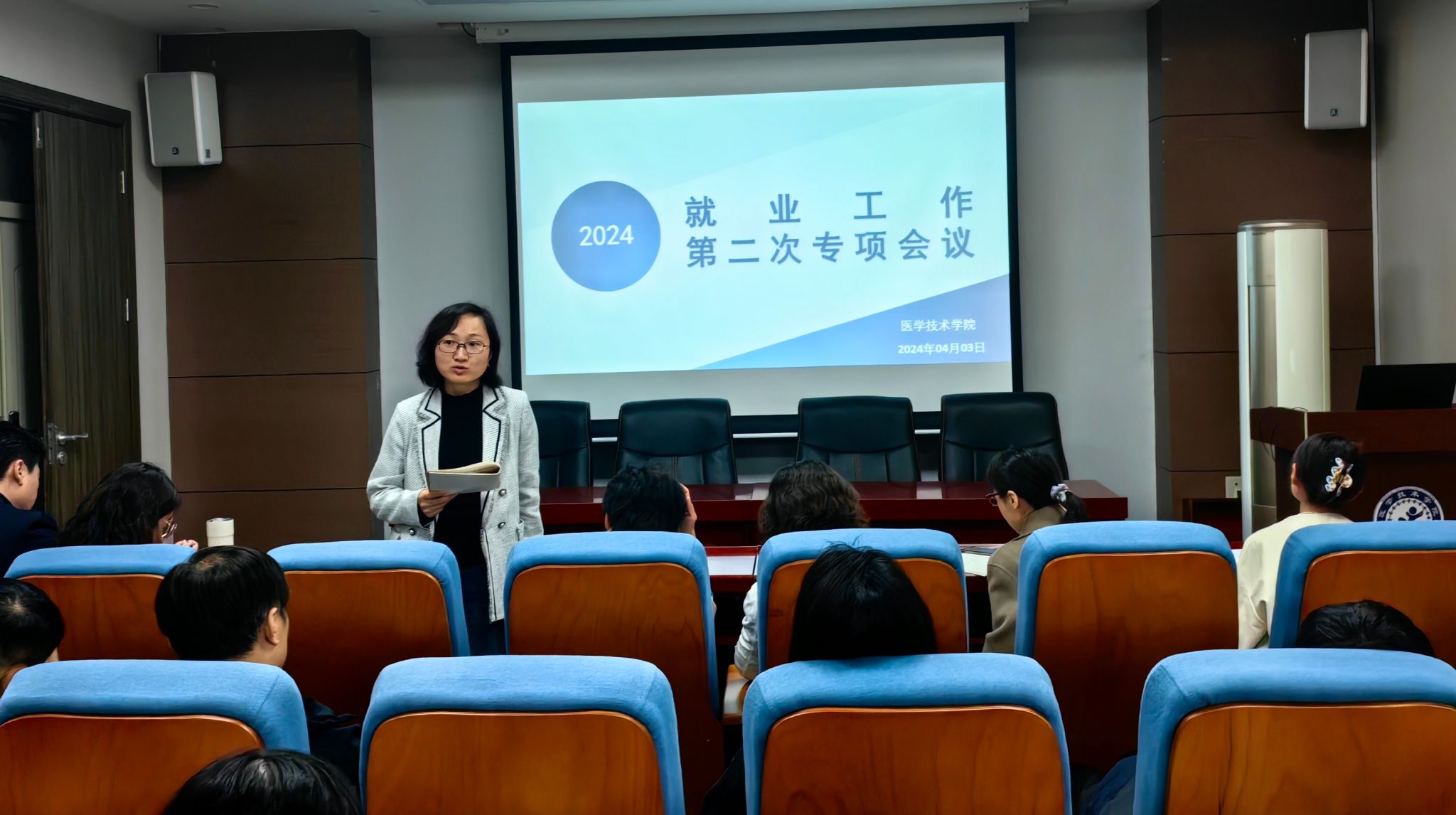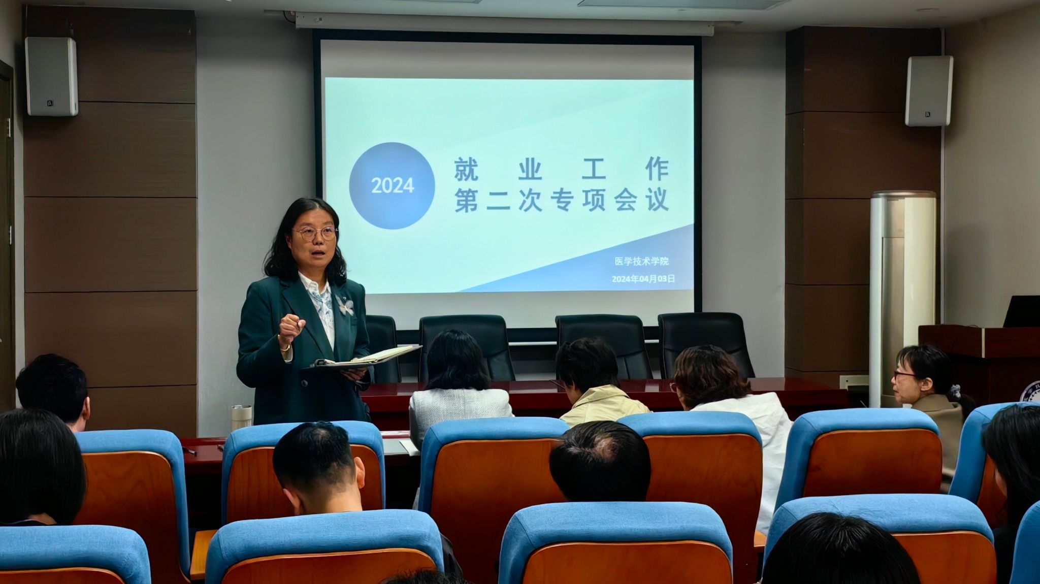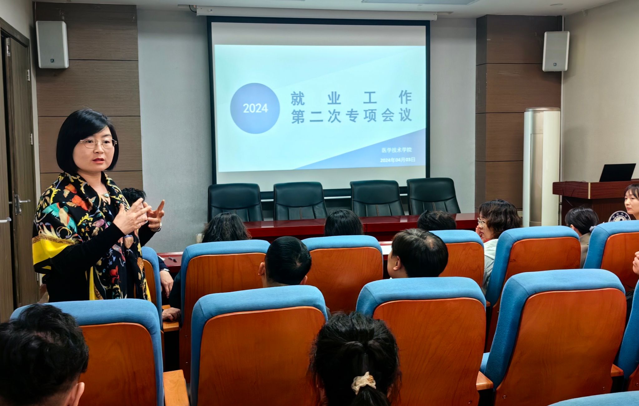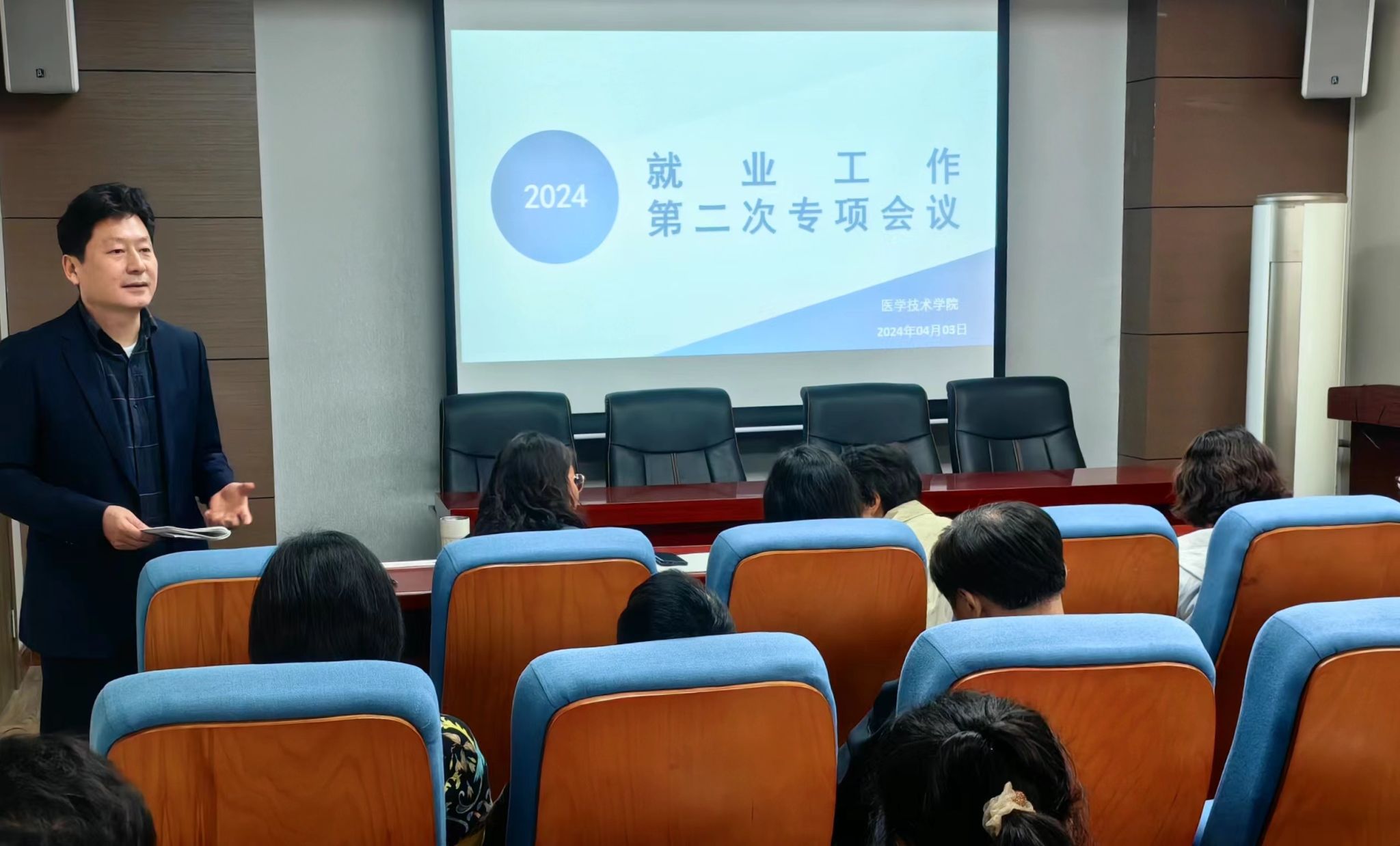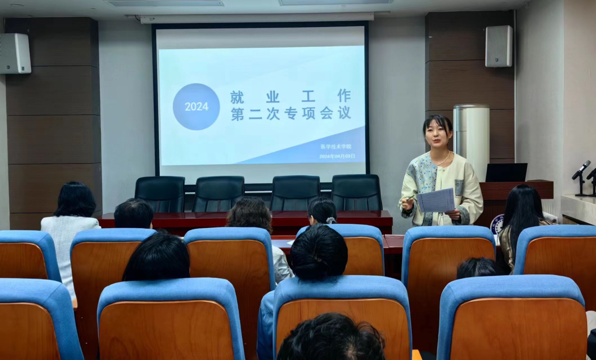 4月3日中午,我院在学院学术报告厅召开2024届毕业生就业工作第二次专项会议,学院党总支书记任向明、院长孙静、副院长王莉及全体教师参加本次会议。