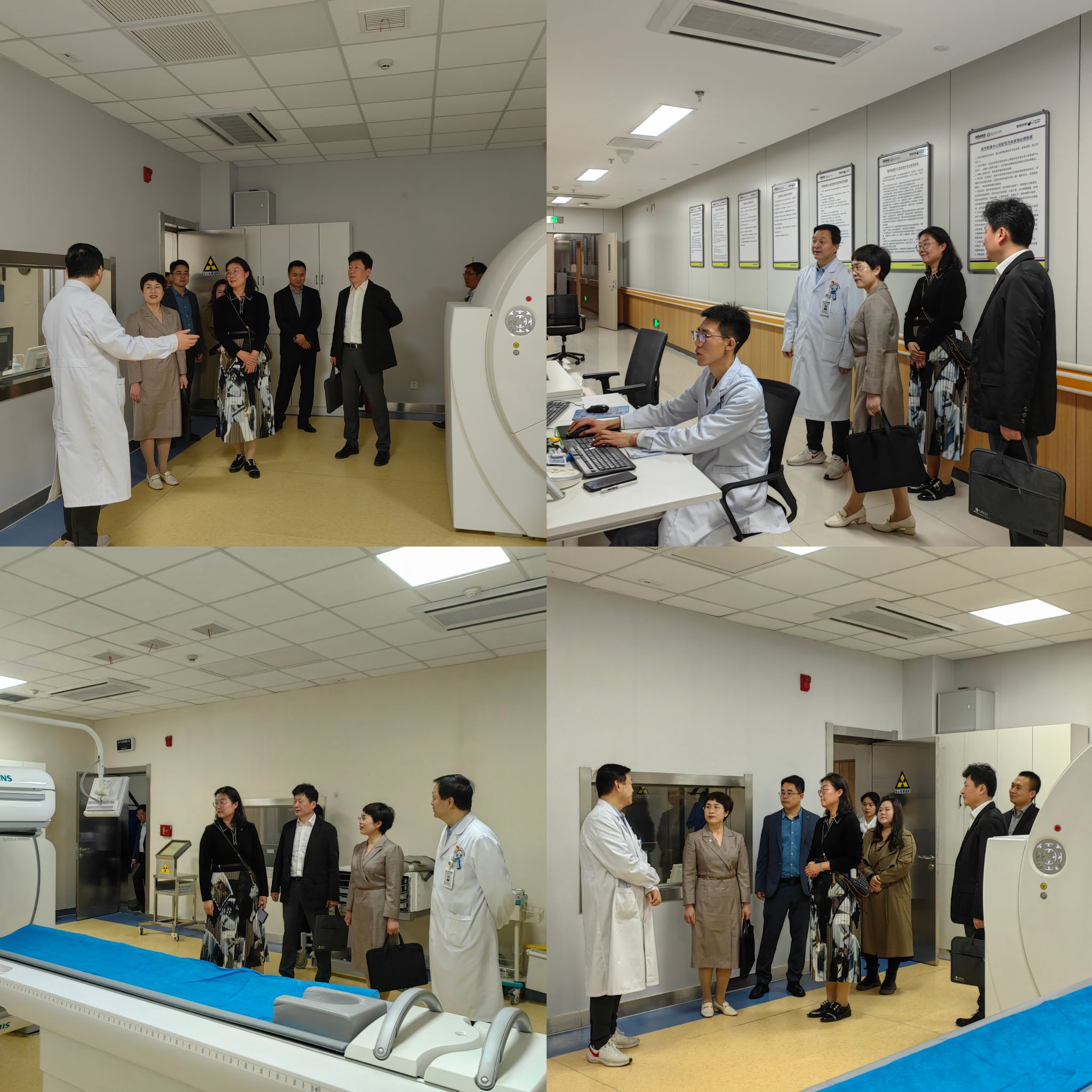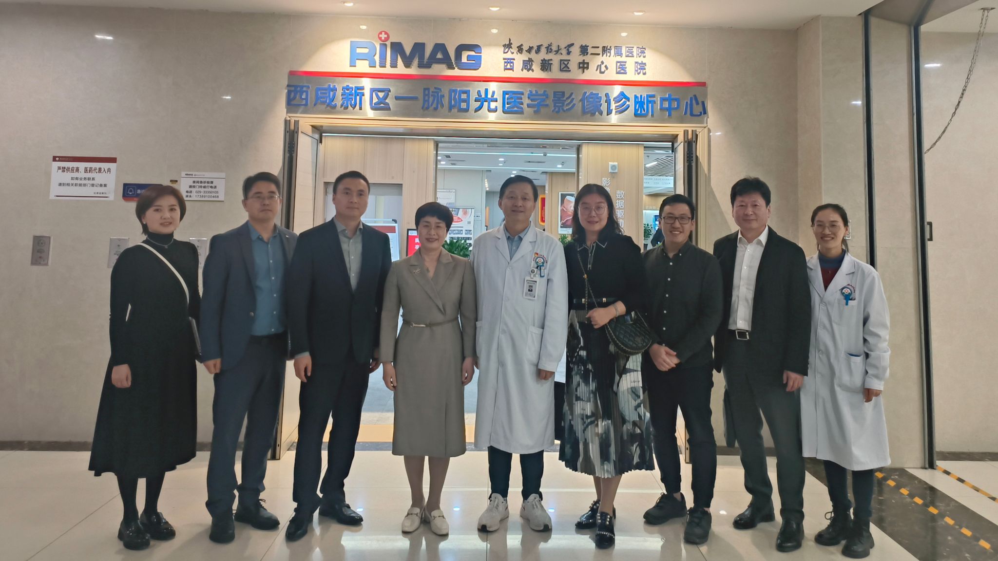 医院影像中心主任贺朝、一脉阳光陕西省区运营总监和相关职能负责人陪同和新盈一行实地参观了影像中心设备。