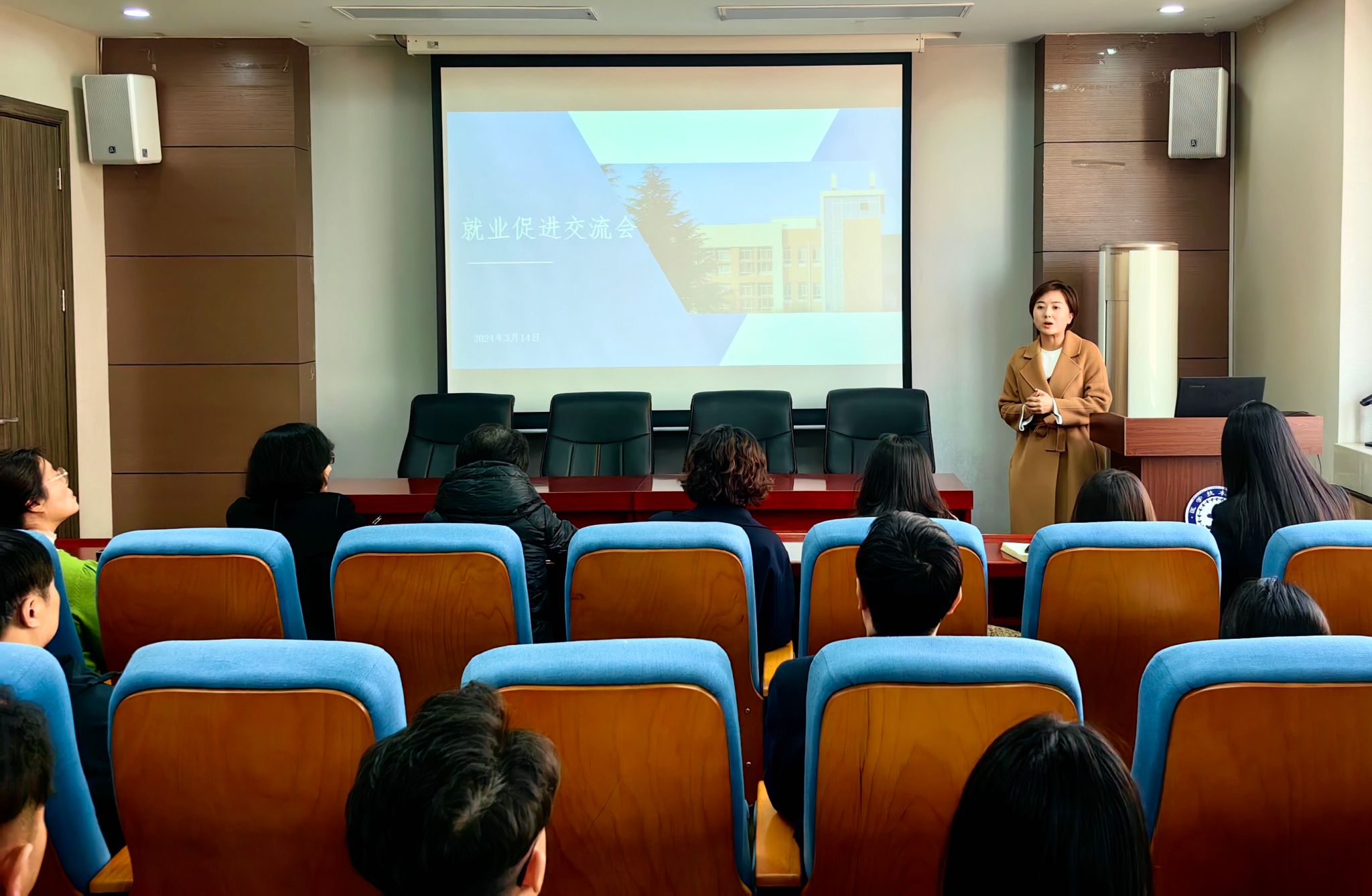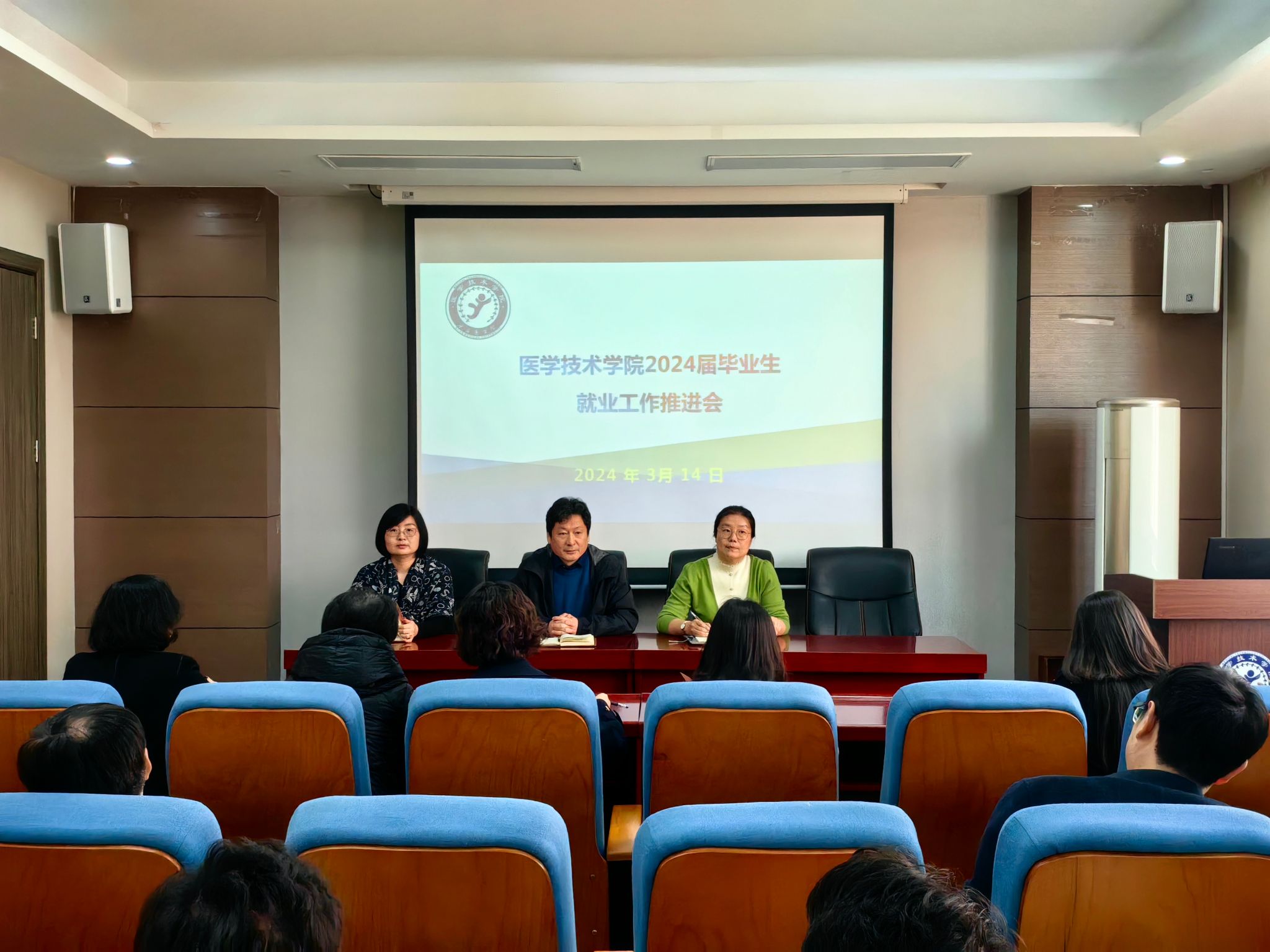 为进一步贯彻落实学校2024届毕业生就业工作要求,紧抓就业关键期,全力推进我院毕业生就业工作落实落地,实现学院就业工作明显提升,3月14日中午,我院在学院学术报告厅召开2024届毕业生就业工作推进会,学院党总支书记任向明、院长孙静、副院长王莉及全体教师参加本次会议。