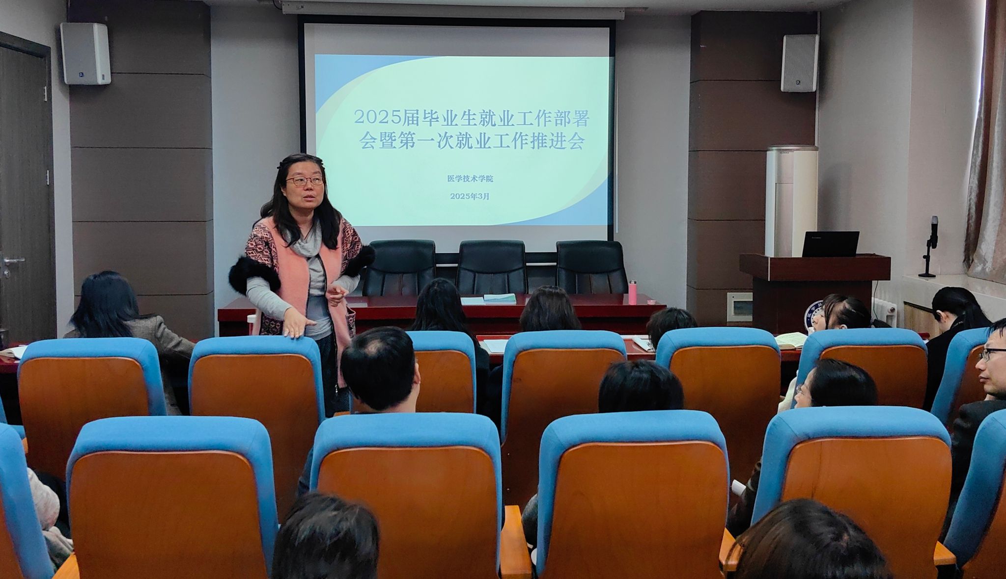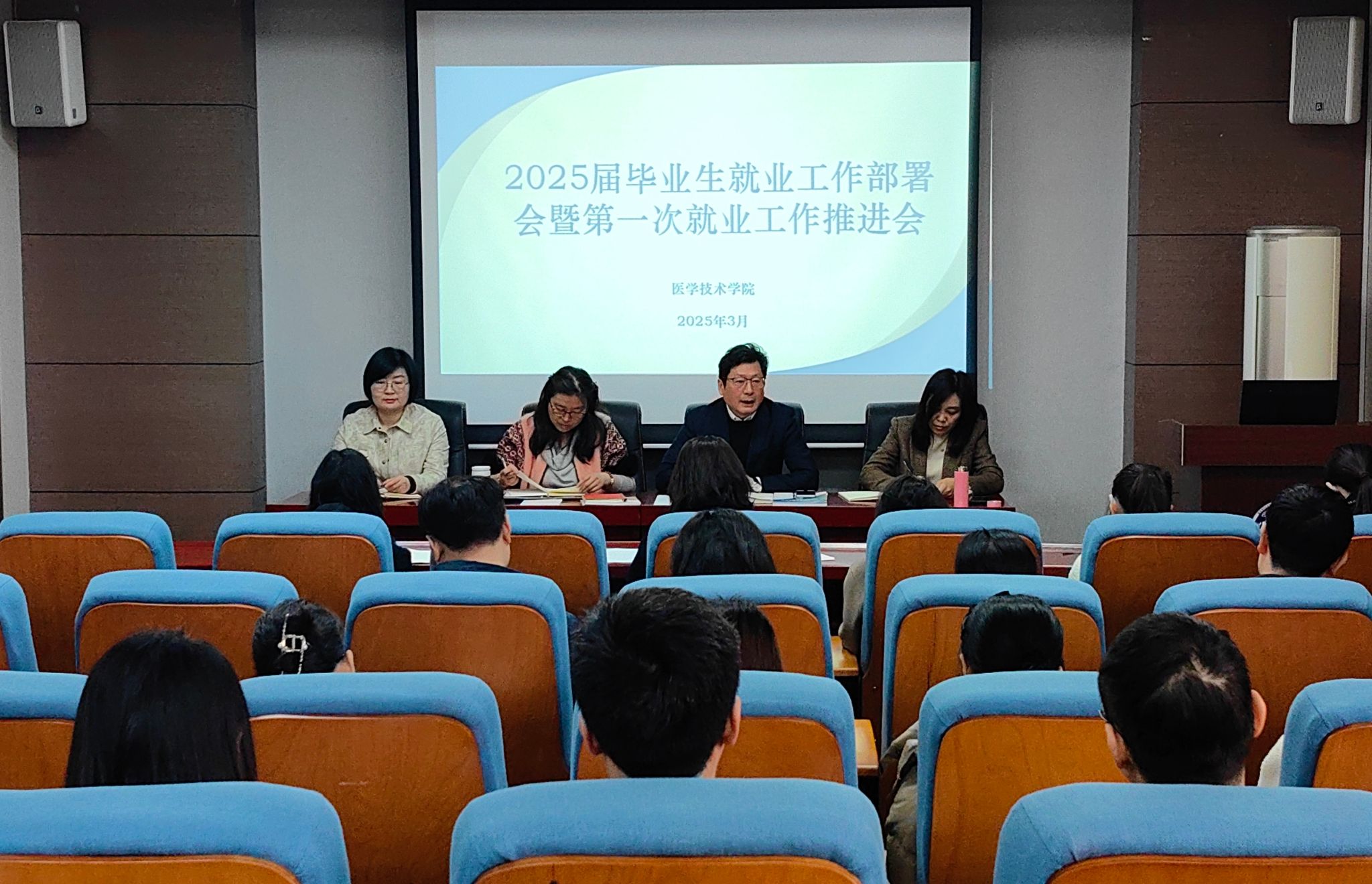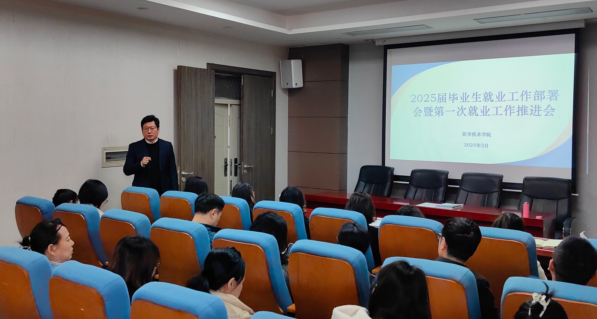 为进一步贯彻落实党中央、国务院关于高校毕业生就业工作的决策部署,紧抓就业关键期,强化就业优先导向,全力推进我院2025届毕业生就业工作落实落地,3月21日,我院在学院学术报告厅召开2025届毕业生就业工作部署会暨第一次就业工作推进会,学院领导班子及全体无课教师参会,会议由党总支书记任向明主持。