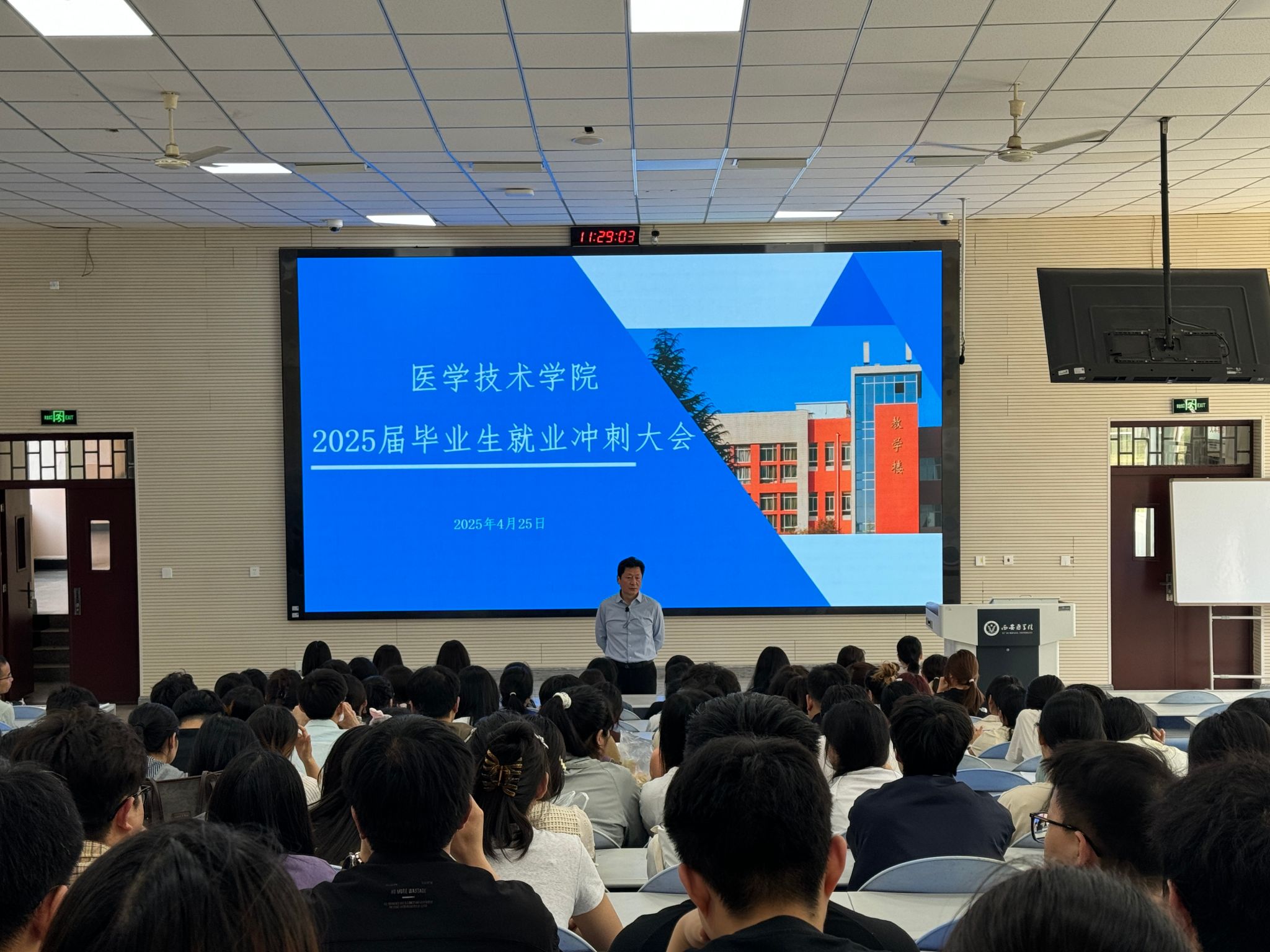 为全面推进学院2025届毕业生就业工作,引导毕业生认清就业形势,在关键节点把握机遇、应对挑战,积极就业。4月25日上午,学院在教学楼阶梯一教室召开2025届毕业生就业冲刺动员大会。学院党总支书记任向明、副书记徐景彩作动员讲话,毕业班辅导员吴思明、李周、就业专干李卓遥及全体2025届毕业生参会。