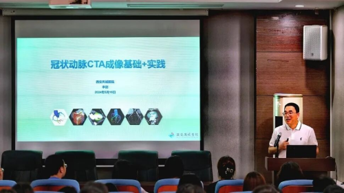 李剑结合自己在一线临床工作中的丰富经验,从多方面对冠状动脉CTA进行了生动讲解。他介绍了冠状动脉CT检查扫描期相的选择,着重阐述了两种CT扫描模式的特点及临床应用,以图像举例说明扫描参数、对比剂、个体参数等对图像的影响及图像评估要点。报告会后,他对专业教师及部分学生提出的相关专业问题给予了耐心解答。